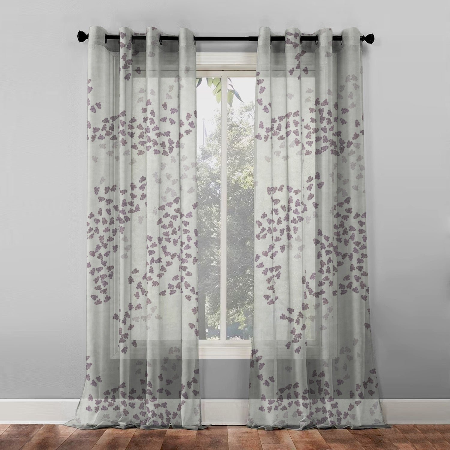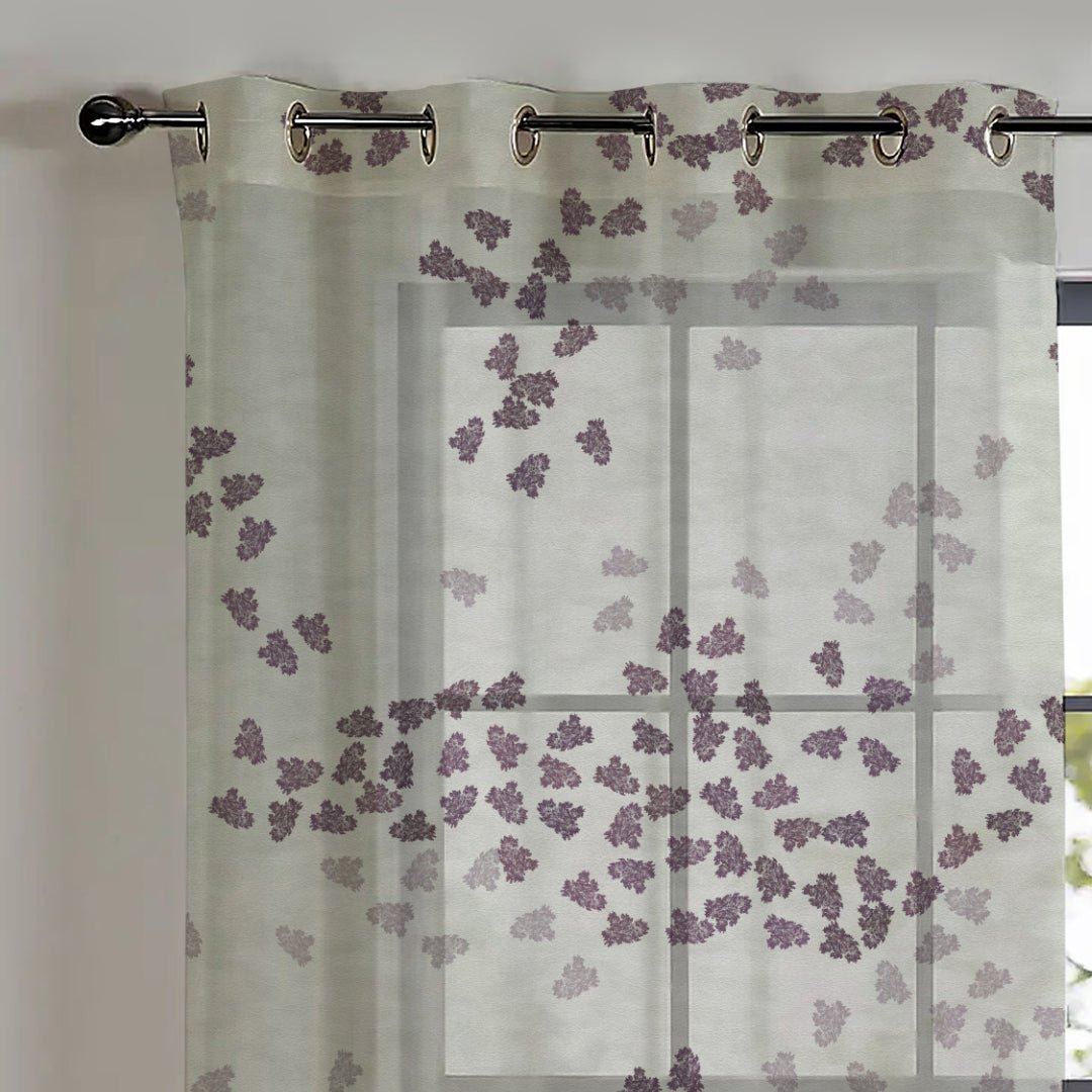 Elegant Coral Print Sheer Semi Transparent Curtain – Set of 2 -DS500B