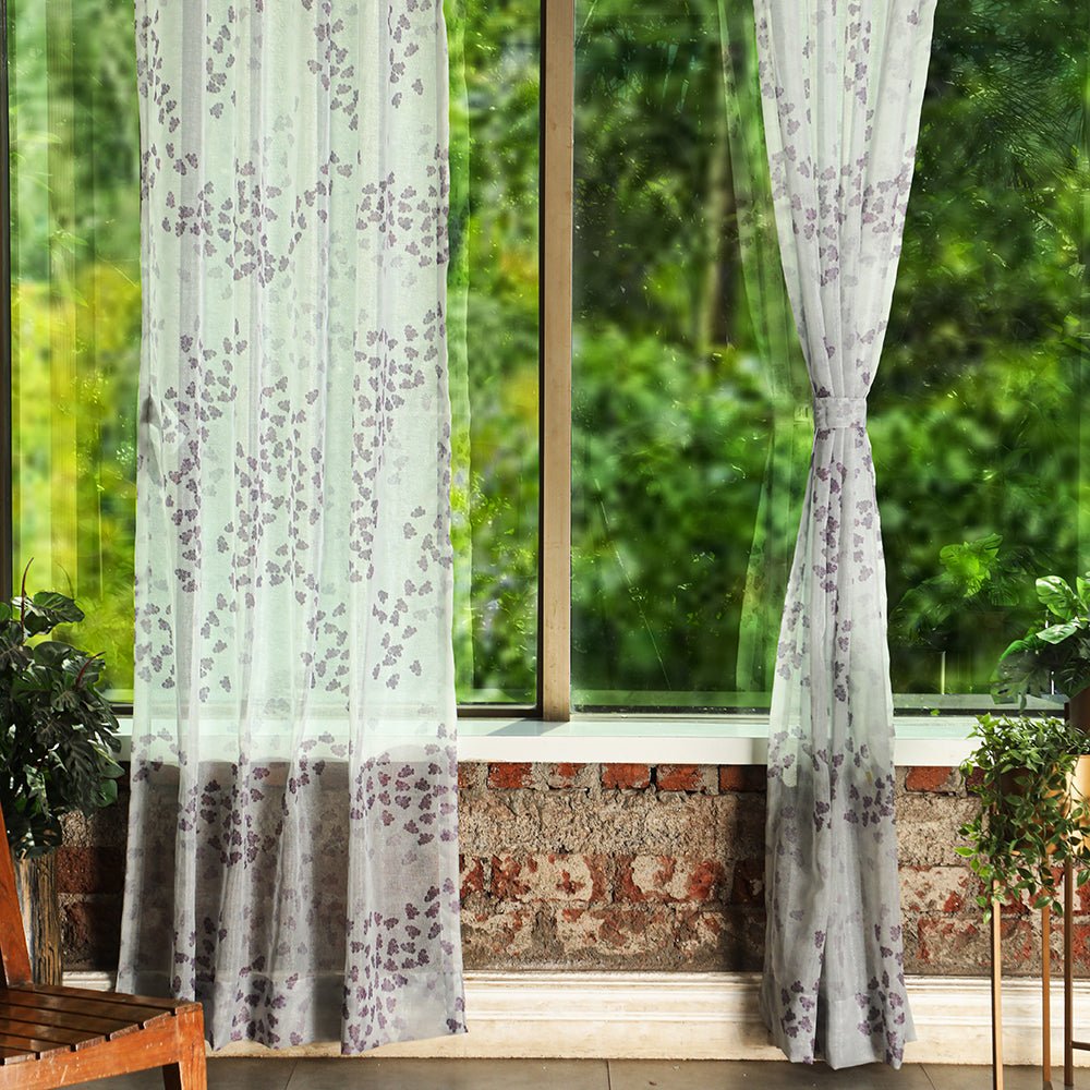 Shop our fluttering beauty geometric curtain in platinum grey online at Drape Story. These are semi transparent curtains, available for all window & door sizes.