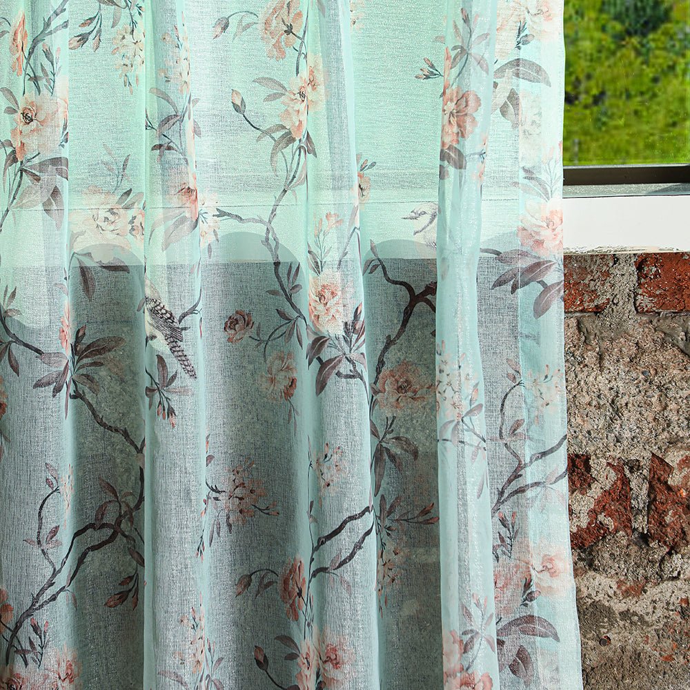 Elegant Floral Print Sheer Semi Transparent Curtain – Set of 2 -DS207A