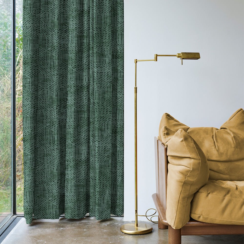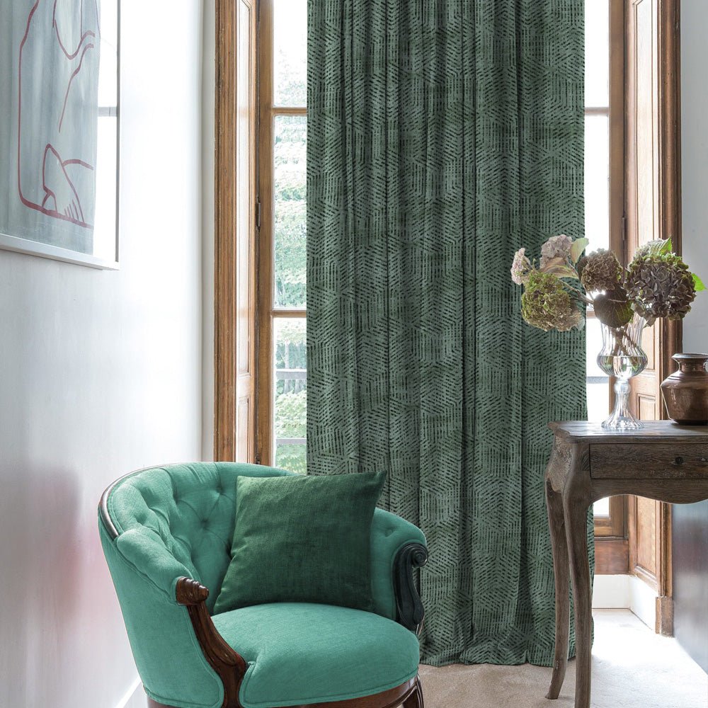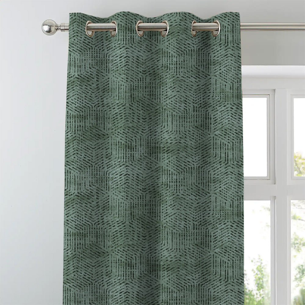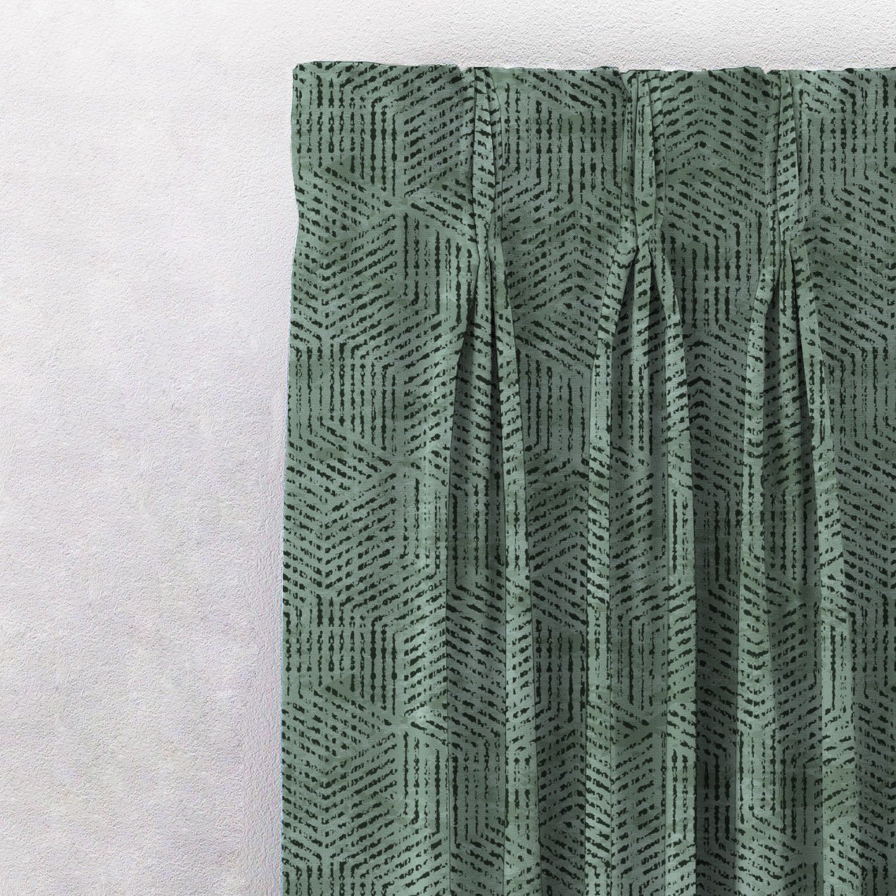 Shop our brokenhive geometric curtain in basil green online at Drape Story. These are room darkening curtains, available for all window & door sizes.