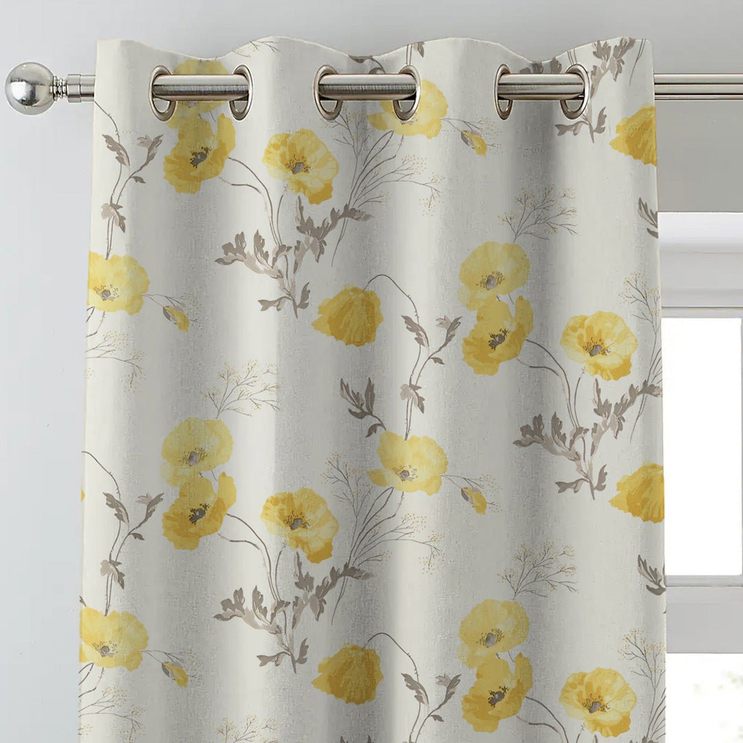 Poppy Meadow Floral Yellow Heavy Satin Blackout Curtains Set Of 2 – (DS133A)