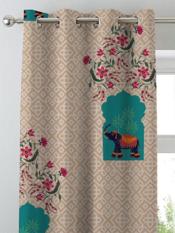 Ethnic Essence Floral Tan Beige Heavy Satin Blackout Curtains Set Of 2 – (DS274A)